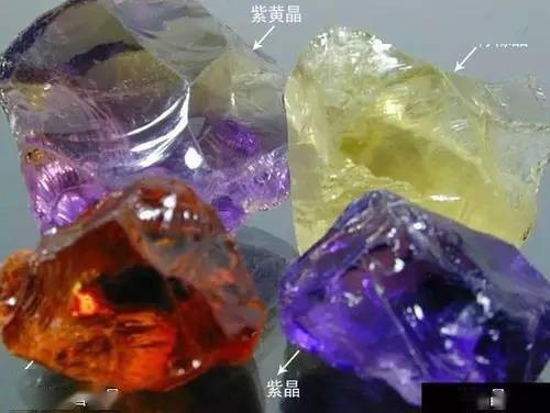 匿名18、 水晶 后左:紫黄晶; 后右:柠檬晶; 前左:Madeira酒黄晶; 前右:紫晶>产地:巴西