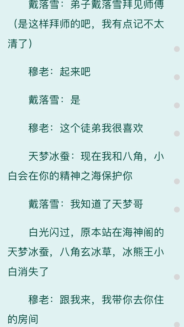 戴落雪跟着穆老来到了,距离海神阁较近的屋子上,穆老:从现在开始你就住在这里,有事你可以去宿舍那里找我,我都在那里