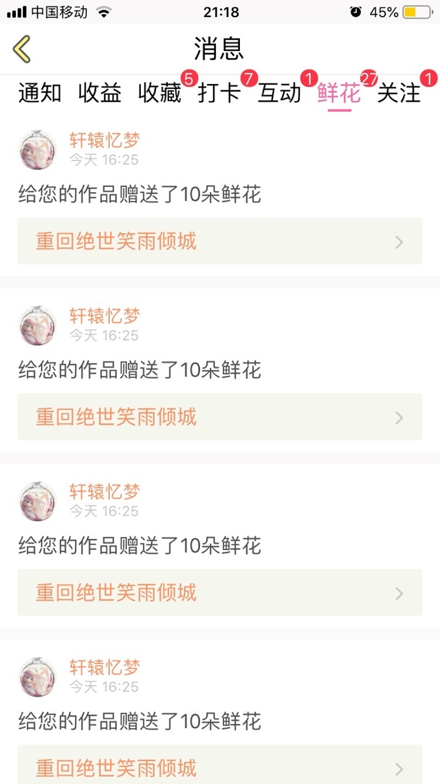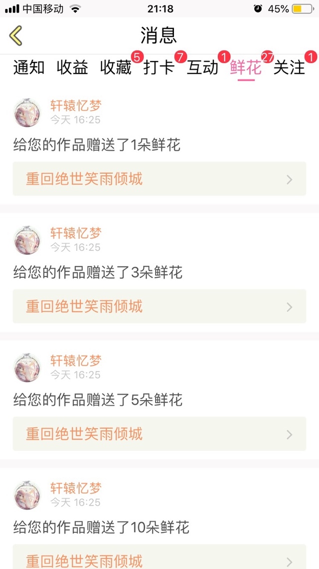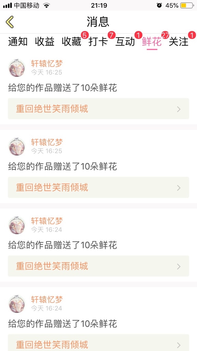 雪御灵她送我的鲜花达到249朵,在这里感谢一下