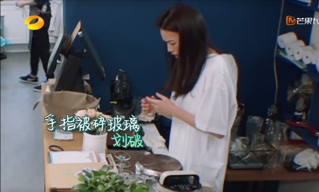 舒淇刚刚洗杯子的时候被划伤了,小伤没事