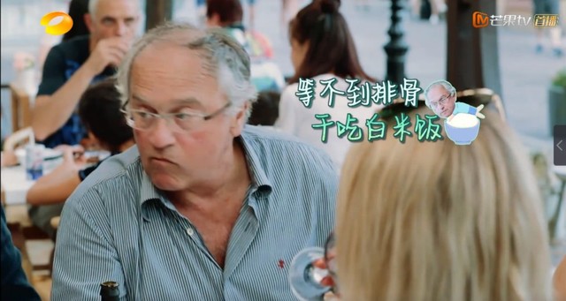 苏有朋他没事,他只是看他的同伴都在吃,他就有点搞笑这样子,啊~想舔盘子了这样等