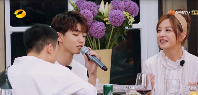 舒淇姐贴心的为小白拿着话筒