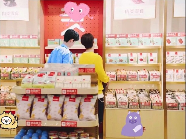 隔着两个货架,有几个女学生打扮的人,正在挑选着各种味道的果干。其中一个抬头寻找坚果区的时候,正好看到了肖战和王一博。