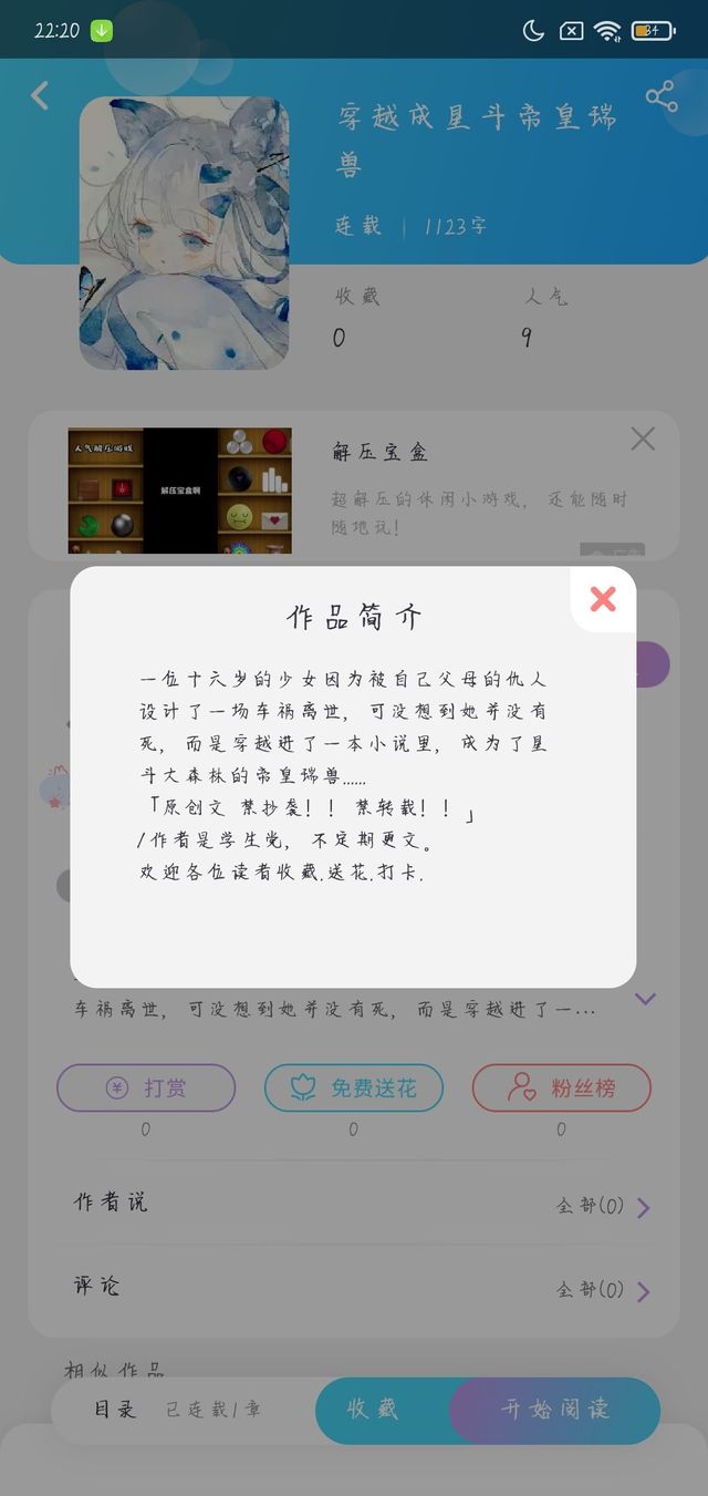 玥柔《穿越成星斗帝皇瑞兽》