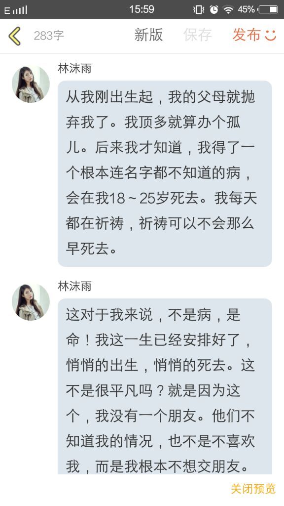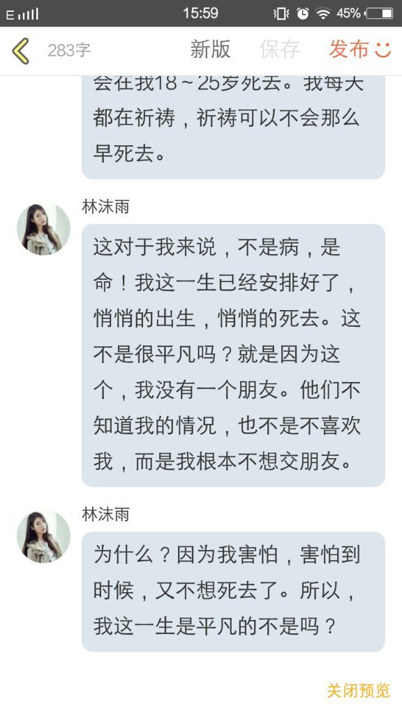 林沫雨开始讲述她自己的故事。