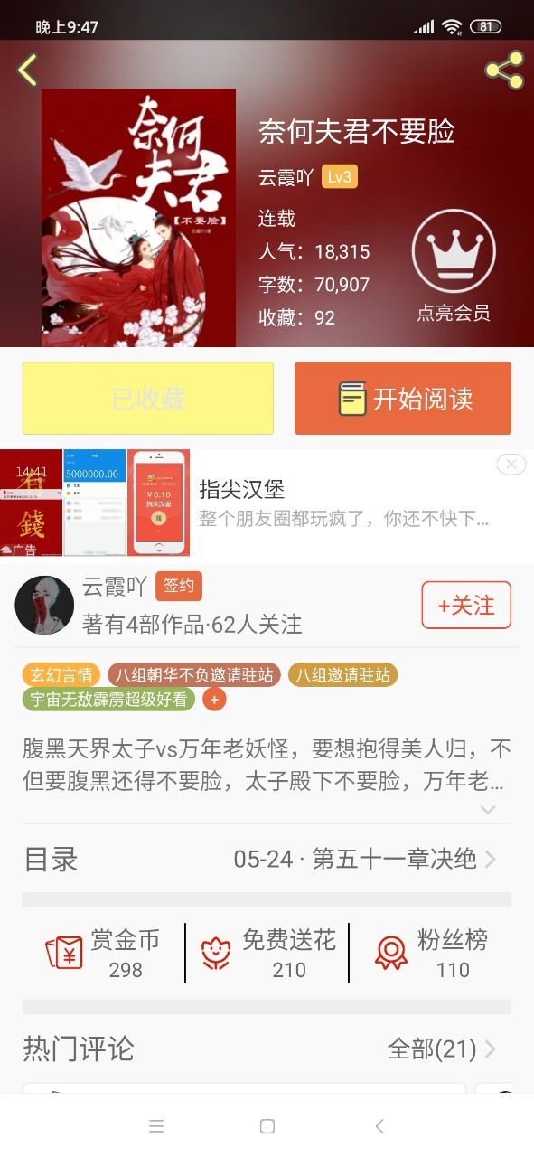 青稞子如果喜欢这种题材的看官大大们,不妨去看看这位大大的文嗷,看这位大大的字数就知道,是很可靠的大大呢,入坑不亏🌝🙊🙊