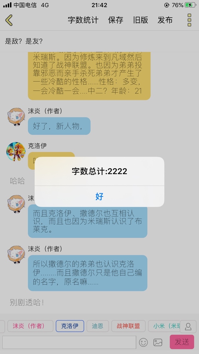 沫炎(作者)好了,新人物,