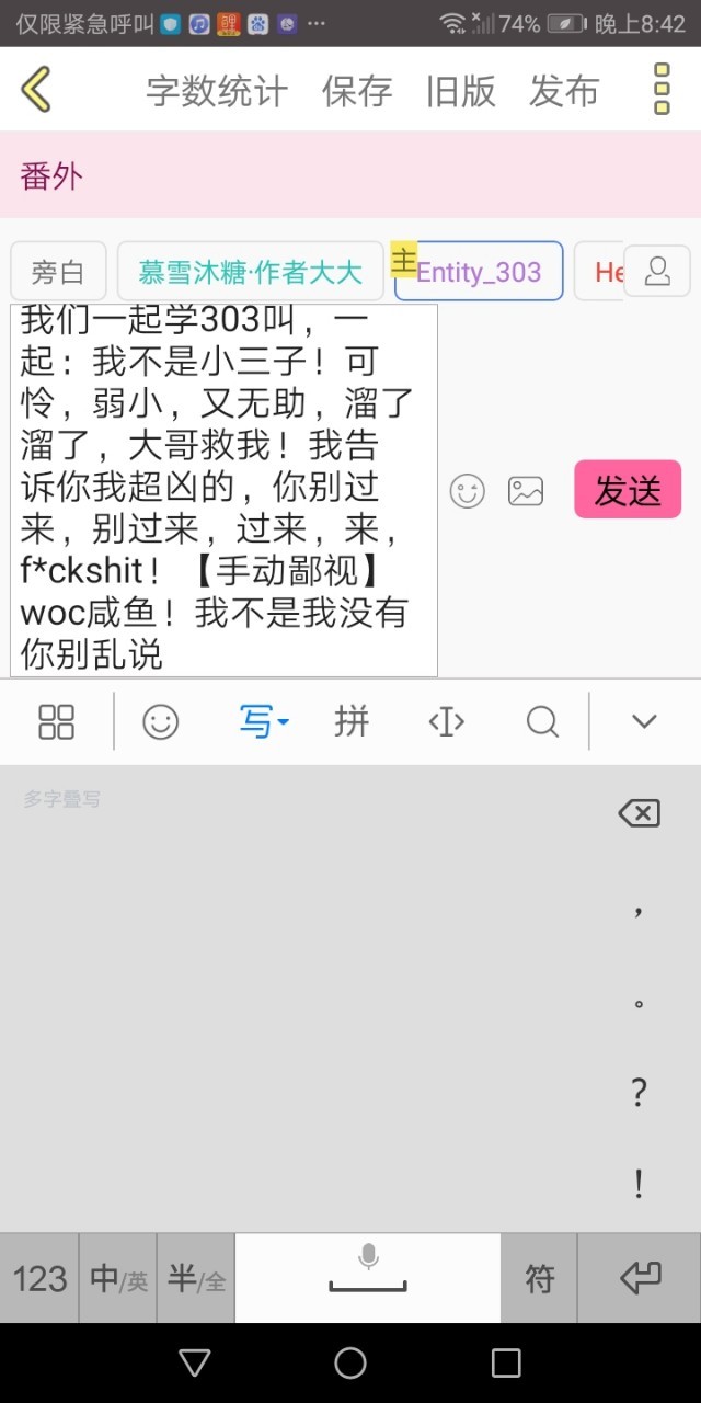 Entity_303我们一起学303叫,一起:我不是小三子!可怜,弱小,又无助,溜了溜了,大哥救我!我告诉你我超凶的,你别过来,别过来,过来,来,f*ckshit!【手动鄙视】woc咸鱼!我不是我没有你别乱说