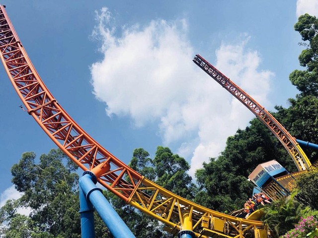 水柱消失,白诺才想起来原来他们所在的后面就是游乐园。