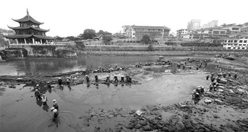 原来左罗山承包的工程是清理南明河甲秀楼段的淤泥,需要下水干活。活很脏,水很臭,干起来很苦很吃力,苏立是没有亲眼见到,否则他不会认为轻松。每天工钱是10块,管两餐饭,上工时间从早晨8点到下午6点。