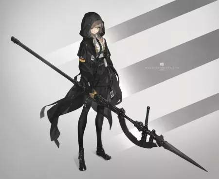 灰色长发灰色眼眸,里面穿着黑色衬衫,下身是一条紧身皮裤,外套是比较宽松类型的,上面绣着一只蝙蝠,腰间系着一条皮带,后面背着剑