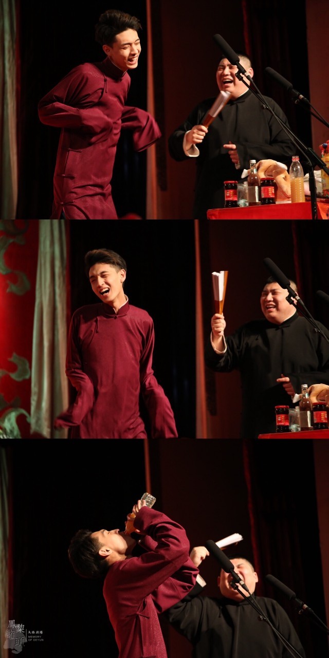 孙九香拎着“特制饮料”走回台上,底下的观众眼尖的看见了这个“纯净水”的颜色一下子都开始笑了起来,秦霄贤一回头一看一脸懵逼,好家伙这是新惊喜吗???孙九香把东西放到秦霄贤桌子面前后站回旁边,拿着桌子上的手绢开始擦手,然后看了看旁边盯着“特制饮品”发愣的秦霄贤没忍住用袖子遮住脸乐了起来