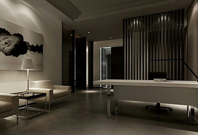 整个办公室除了桌椅就是墙上的画。