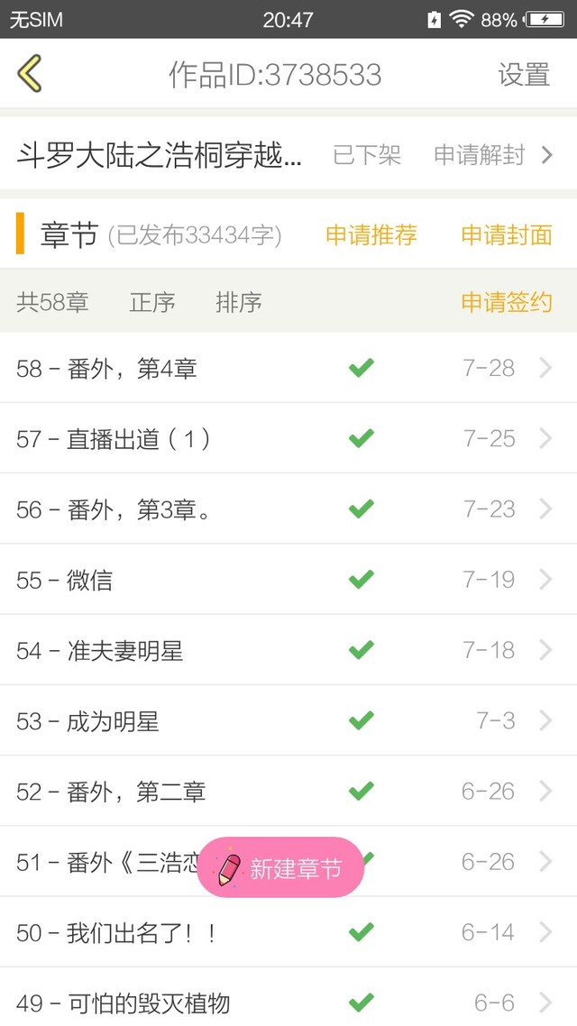 作者至于作品吗?刚才我已经申请能不能上架了,如果三次不行的话那很抱歉,你再也看不到那个作品了,反正我纳闷的就是为什么给我下降,不是说关于斗罗大陆四部的同人文吗?我这就是借用了绝世唐门的人物和类似的故事吗?而且我写的基本都是现代的事,有多少关于斗罗的事?
