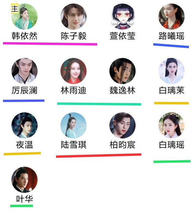 杨幂,杨颖,迪丽热巴,赵丽颖,杨紫,白鹿,许凯,肖战,王一博,罗云熙,赵又廷,邓伦