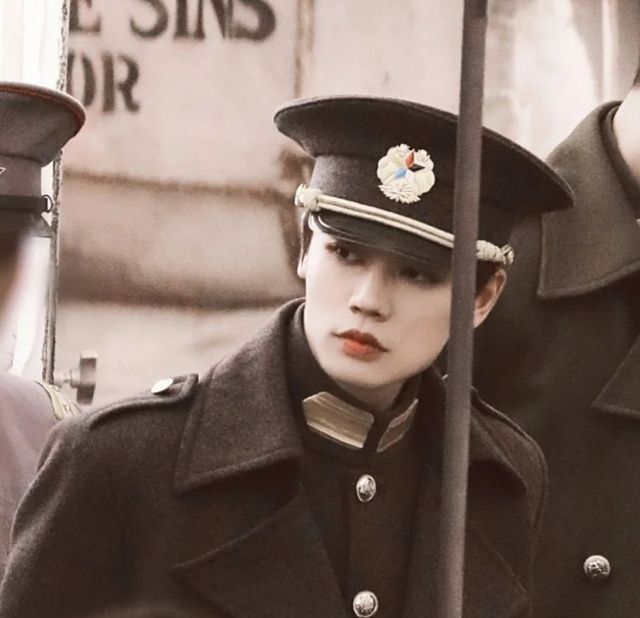 徐光耀身姿挺拔,清俊的面孔本是柔和,却在无表情时有军装的加持显得冷酷飒爽,眉宇间颇显出几分英气,谈吐不俗,气质内敛。