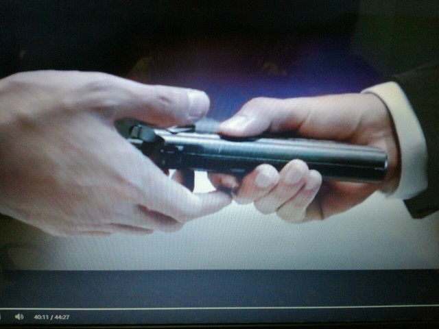 郭阳举着枪严肃的说“枪是用来保护自己的,而不是用来杀人的。”