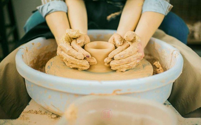 拿了一把泥土,砰一下放在转盘上