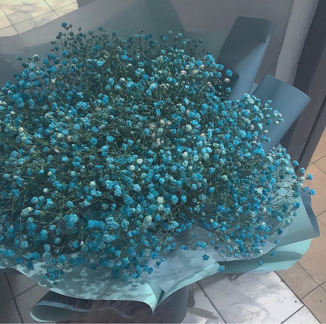 这时,服务员抱着一大束满天星走到两人身旁