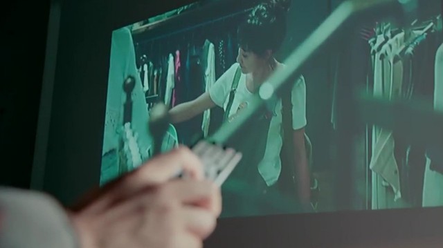 A看了看倒影在墙上的录像