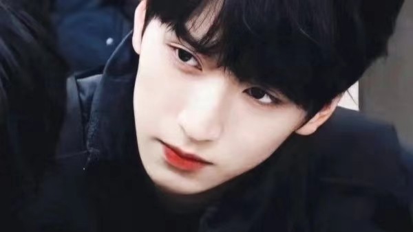 路灯洒在男孩的身上,黑色刘海乖乖的整齐在眉头上方,男孩眼眸清澈干净,黑夜柔和了他的锋利的五官,男孩唇瓣微微上扬。