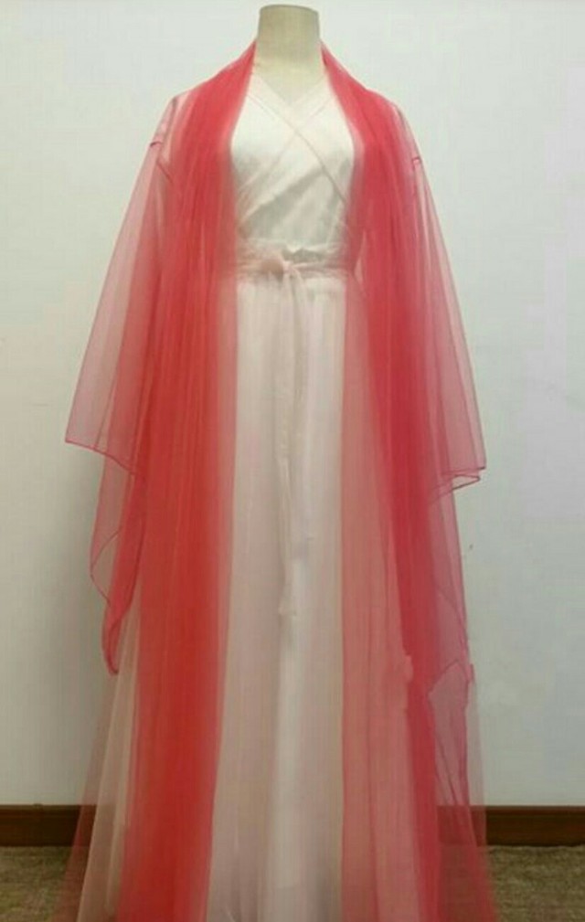 那是一件红白色的古装,鲜艳的红色很适合洛千雪高冷的气质。