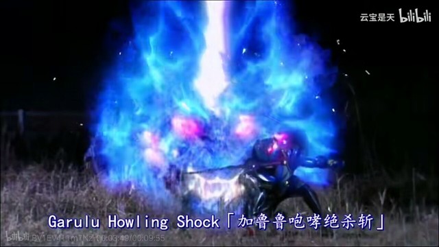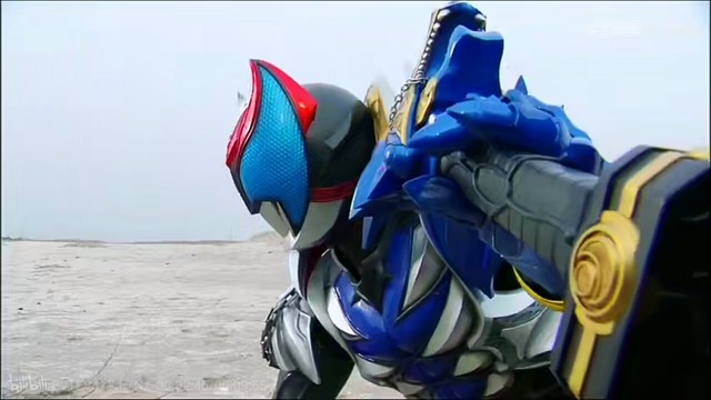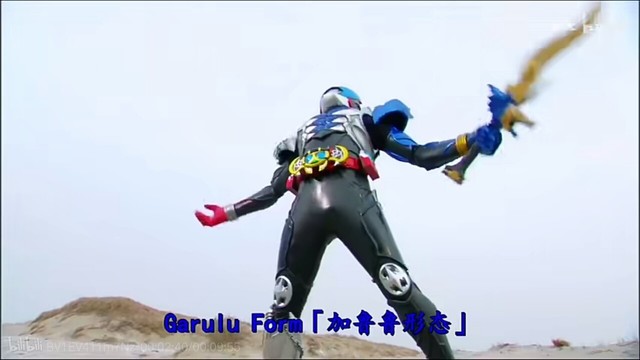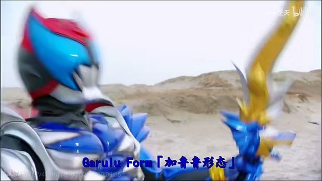 假面骑士Kiva(拔下腰间的蓝色觉醒笛插进Kivat的嘴里)用这个吧,来吧!Garulu!!