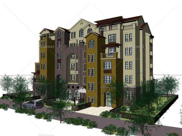 五六层高度,院子里满是花花草草,成排的樱花树和藤萝树,樱花花瓣和藤萝花铺满整个草地,十分漂亮。还有很多盆栽:郁金香,君子兰,牡丹,映山红等等。看出来她们真的十分喜欢花草,房子十分高大,整体都是红色和蓝色。从这里看后庭院也十分大。也看到了几棵高大的樱花树和藤萝树,还有几颗银杏。院子里有一辆车,旁边还有一个停车场路口。(地下型)