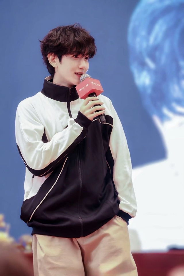 边伯贤坐下后,话筒随意放在桌子上,谁想说就拿