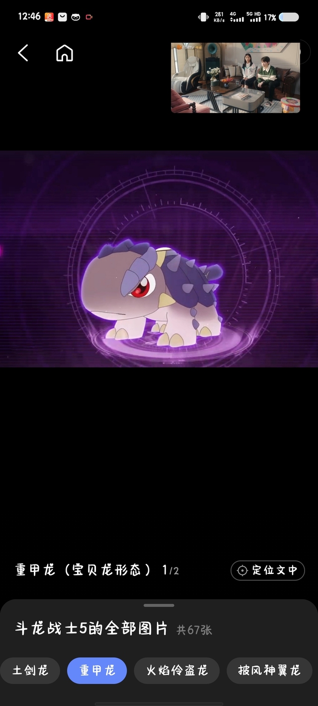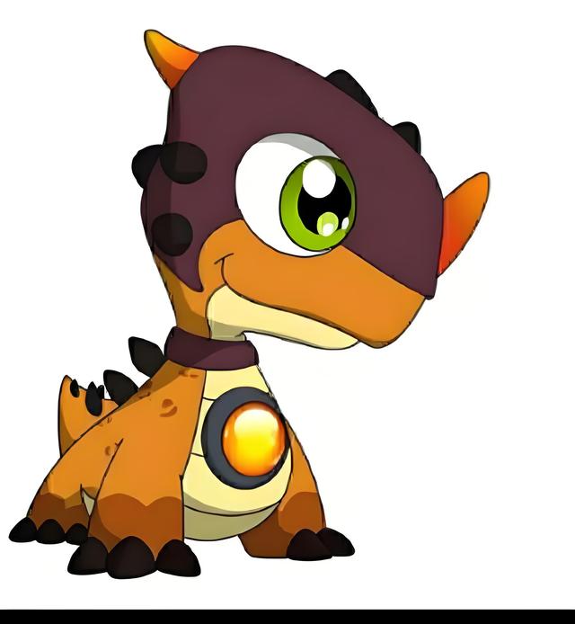 介绍:草食性,生存于白垩纪晚期,背后长有带刺的硬甲,实质为硬化的皮肤,具有较强的防御能力。第22集和披风神翼龙被东方末下达命令拿到双龙核,其他小恐龙则被东方末关了起来。第23集和披风神翼龙拿到了阿迪的双龙核。