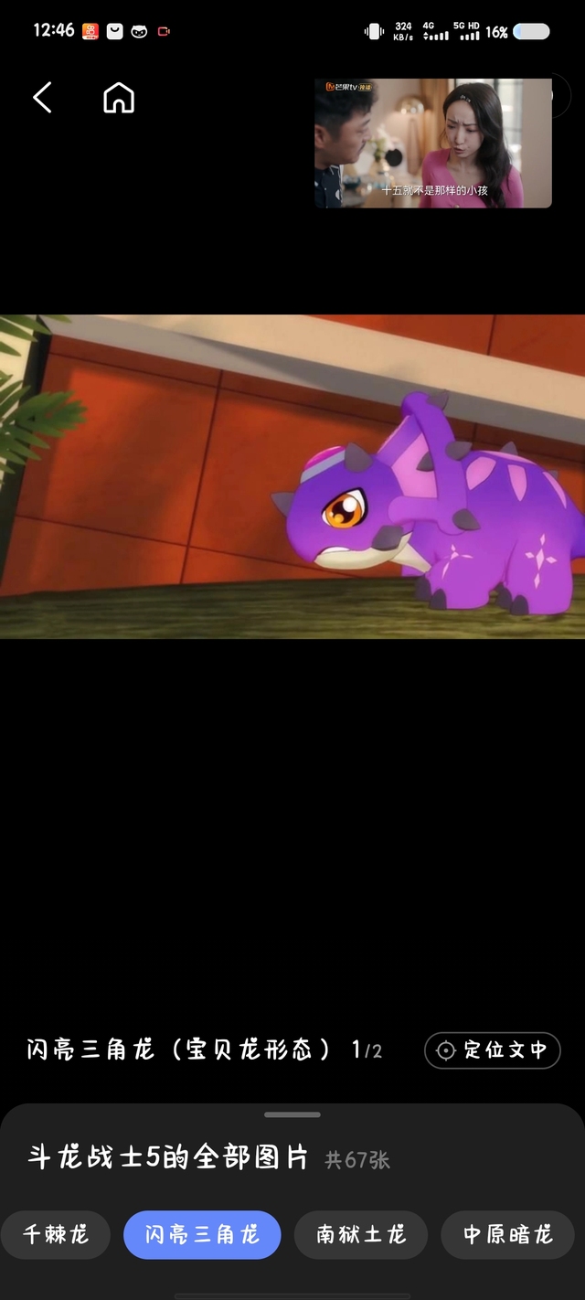 介绍:植食性,白垩纪晚期,它有坚不可摧的头盾,以及一根短又弯曲的角状物,令人联想起现代犀牛。战斗龙形态首次登场于第11集,因是光属性所以受黑暗力量影响不深,索里用星之私语驱散了它体内的邪气使它恢复了本性,恢复本性的闪亮三角龙和索里成了朋友,并且将能量卡交给了百诺,后离开去基地救其他小恐龙。