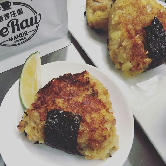 8.煎至两面焦黄后,取出,用海苔片包底装饰即可。