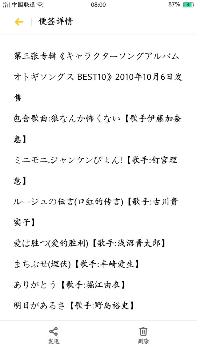 作者三玖然后之前就是大神与七位伙伴,这个动漫里面是有一张专辑的,结果忘给你们发了,所以在这里公布一下