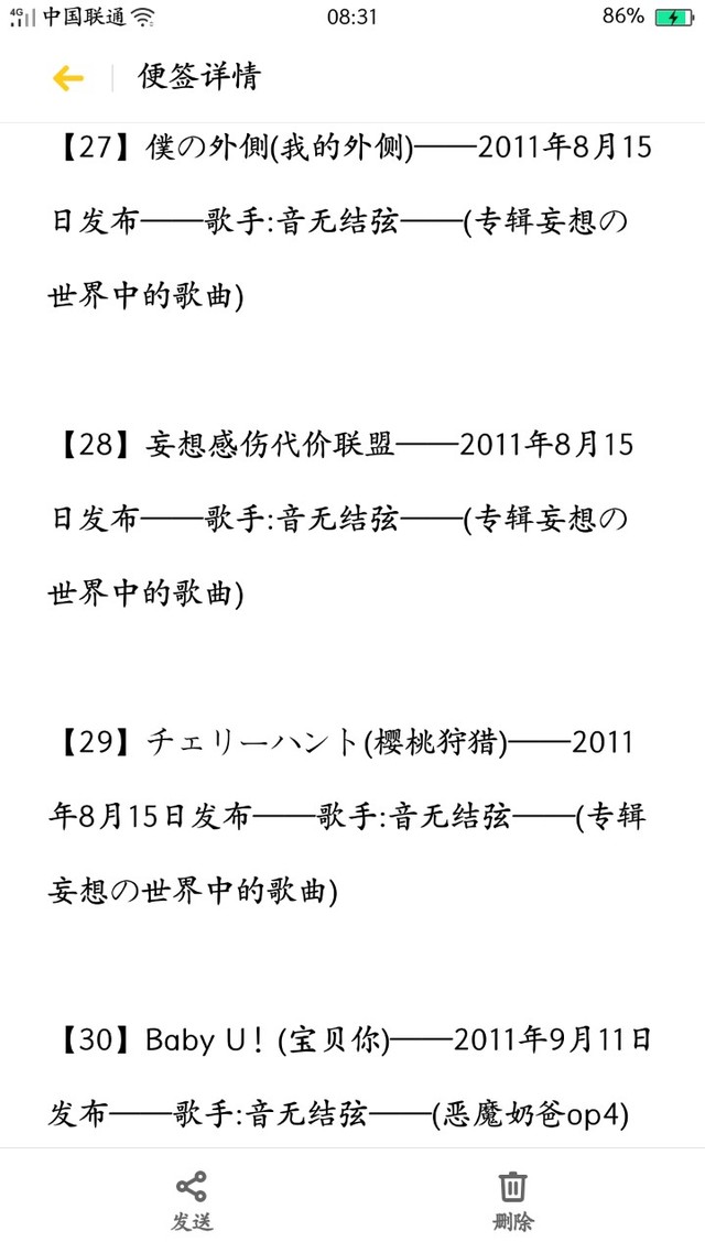 作者三玖然后歌曲方面2011年一共创作了16首歌曲,其中专辑歌曲7首,组合歌2首,单曲7首