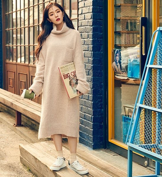 因为是冬天林若曦便穿着毛呢长裙,一双长筒袜,一双帆布鞋对着镜子看了看