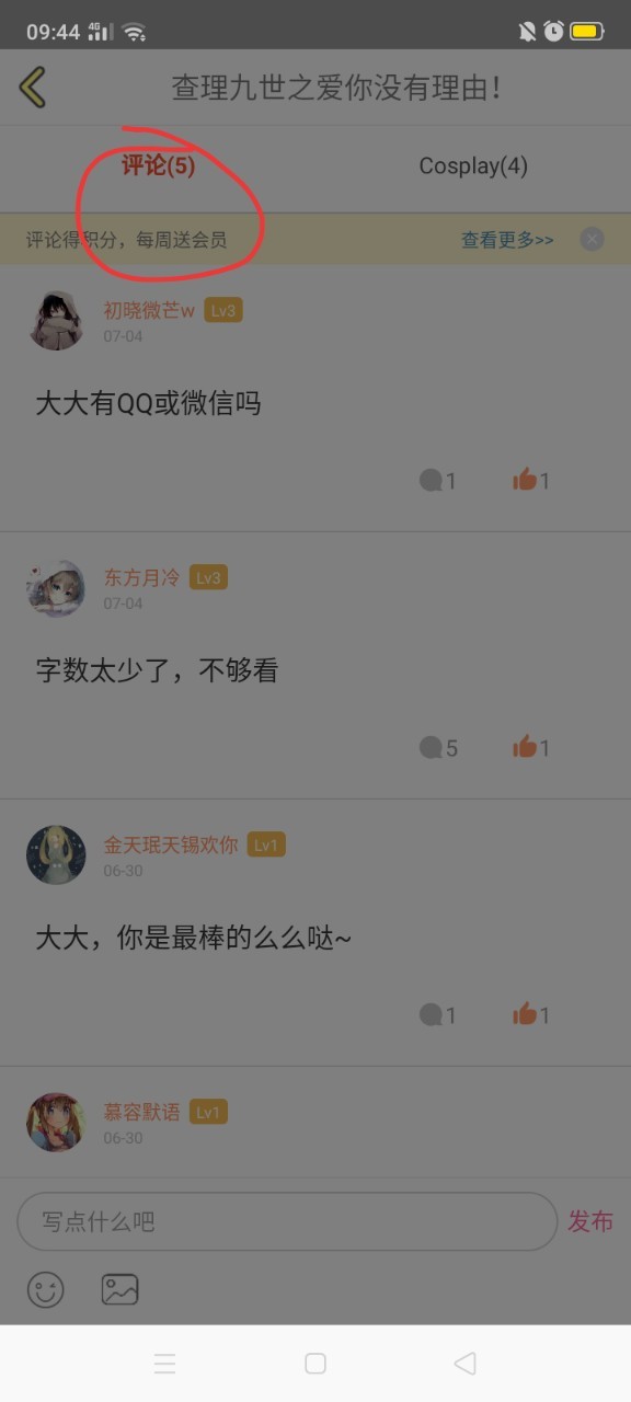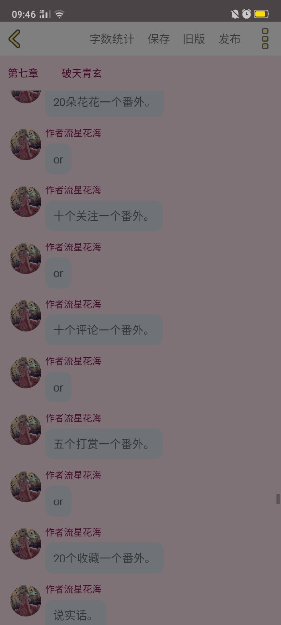 作者流星花海评论5个,还差5个。