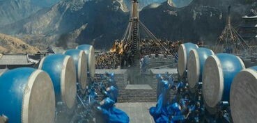 龙套甲乙丙丁如你们刚才所见我们吊索兵就是要站在那个台子上,拿起我们的长枪,从长城上跳下去杀饕餮,因为因为这一项任务是非常危险的,如你们所见,刚才刚才打饕餮。一共上去了大概是30个人,死了20个人。。