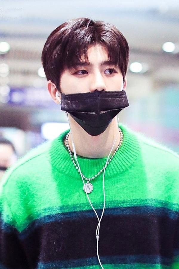 他戴着黑色的口罩,留着乖乖的呆毛,虽然只能看到眼睛,但还是被帅到