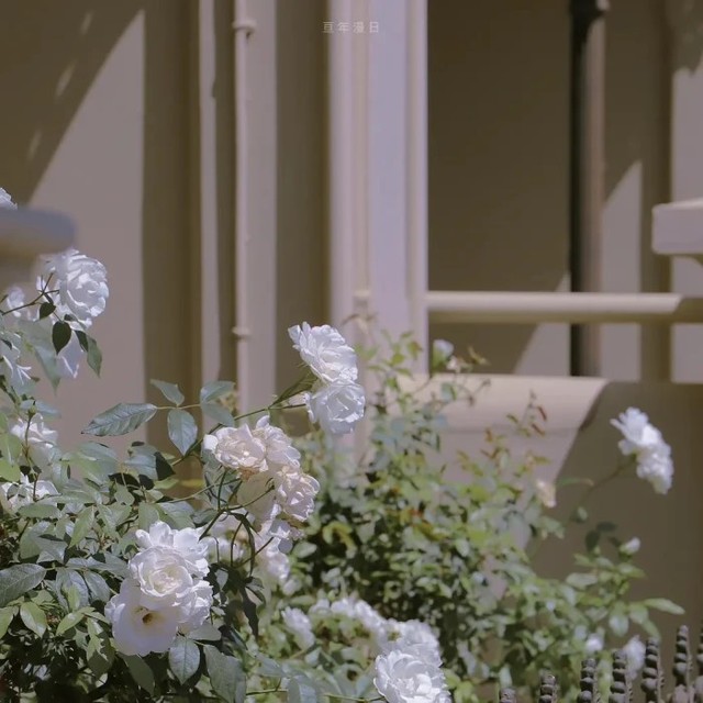 王俊凯来到门旁边的玫瑰花边,认真的打量,拍照。