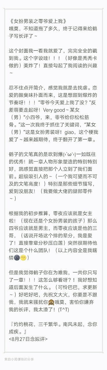 长评.《女扮男装之零爷爱上我》