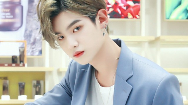 黄明昊从旁边走出来,今天黄明昊身穿一套蓝色的休闲式西装,稍稍处理过的头发把整个人衬托地更加容光焕发。