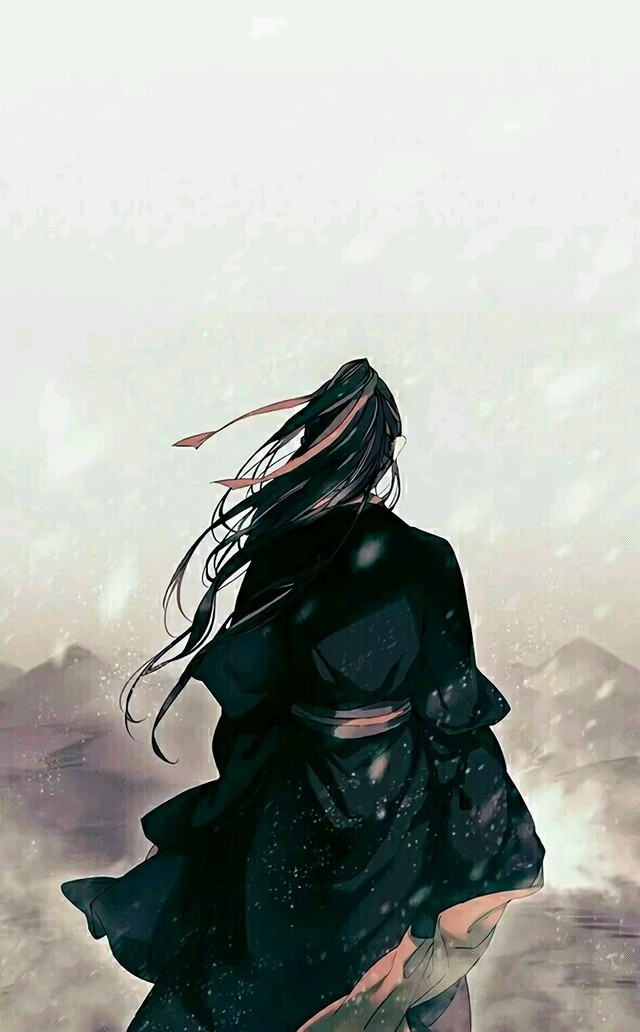 最开始凝结出的是一个背面,他的一头黑色长发随着红色的发带飘飞,修长的身材显得他带了一种孤寂的美感。