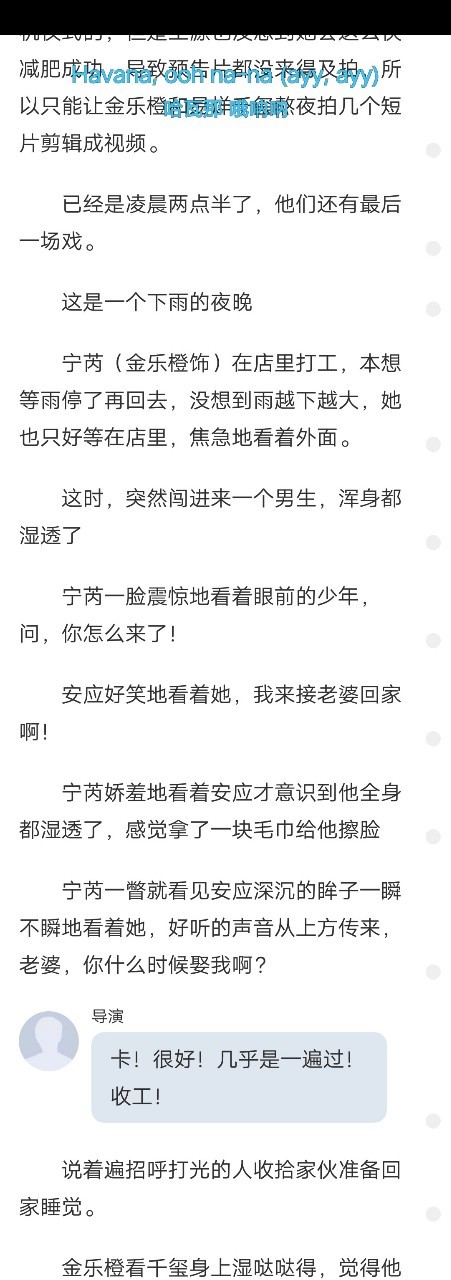 (咳咳,由于我很久没更,自己也忘了剧里金乐橙演的名字,怕年代久远,你们忘了,所以把以前的章节拿出来截屏给你们看一下,金乐橙在戏里女主名字叫宁芮ruì)