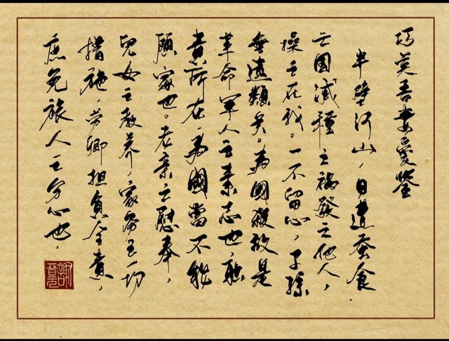 抗战形势日渐紧张,白天军务繁忙的谢晋元一到夜深人静之时,就难免独自遥想家乡亲人,思绪飞向远方,坐卧不安,辗转难眠,不由得披衣坐起,铺展信笺,提笔向爱妻倾诉衷肠: