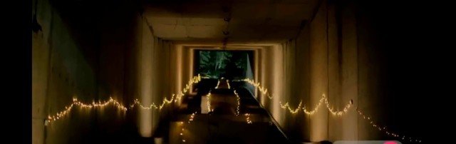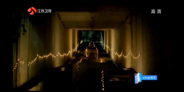 随着车轮的转动,申甬提前布置在涵洞里的小灯泡一个接一个的亮起来,整个涵洞被暖黄色的灯光点亮,
