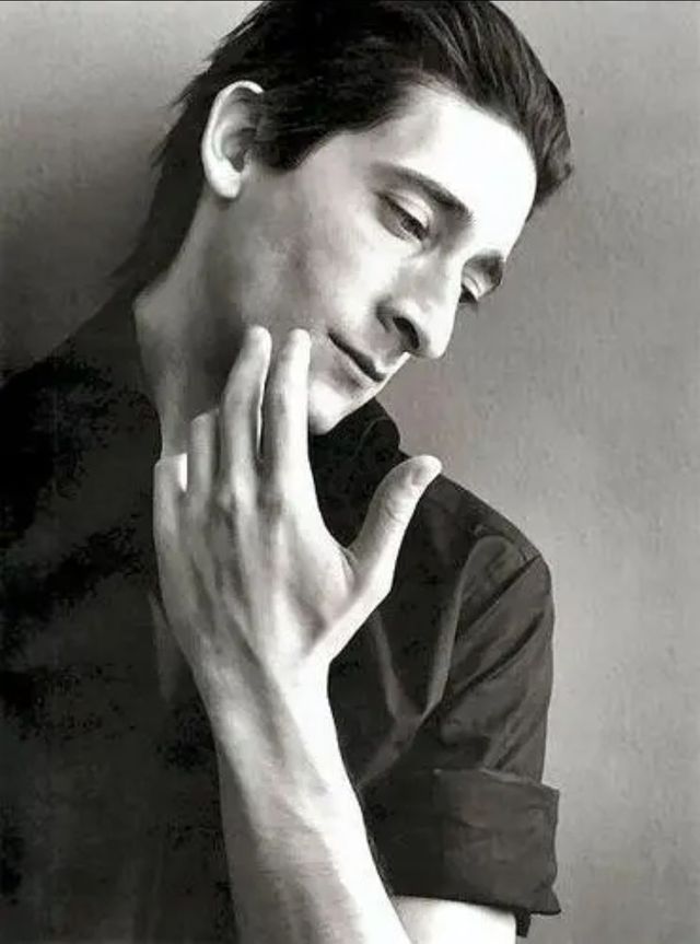 瘦削颀长的身材,八字眉,忧郁悲悯的眼睛,又高又细的鼻梁,完美的下颌线,破碎的性感,犹太裔的五官……也许他有波兰血统?