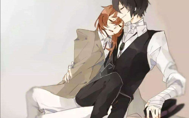 太宰治(手贴上中也的脖子)