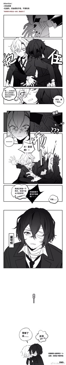 太宰治悬在空中的双手放在了中也的背上,抱住了他