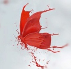 是一只蝶,相比于那只在客寨见到的白色灵蝶不同。这是一只血红色的蝶。