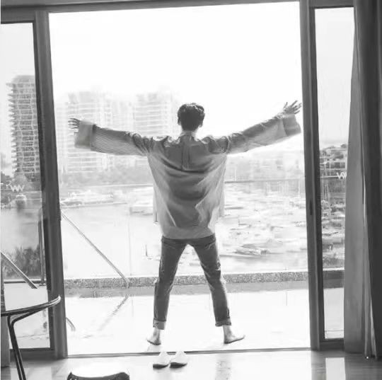 陆铭叹气,用手机拍了一张季韩的背影照发微博。